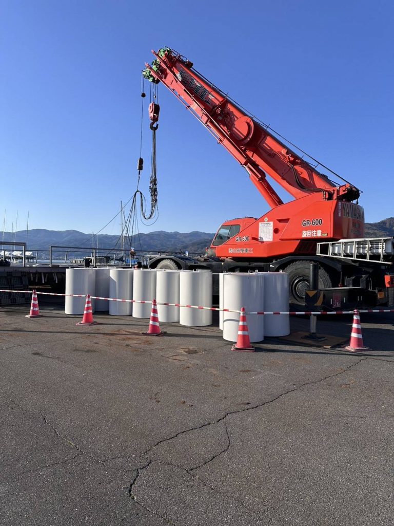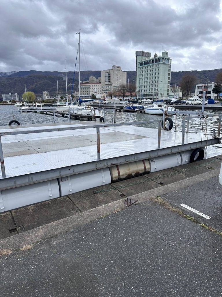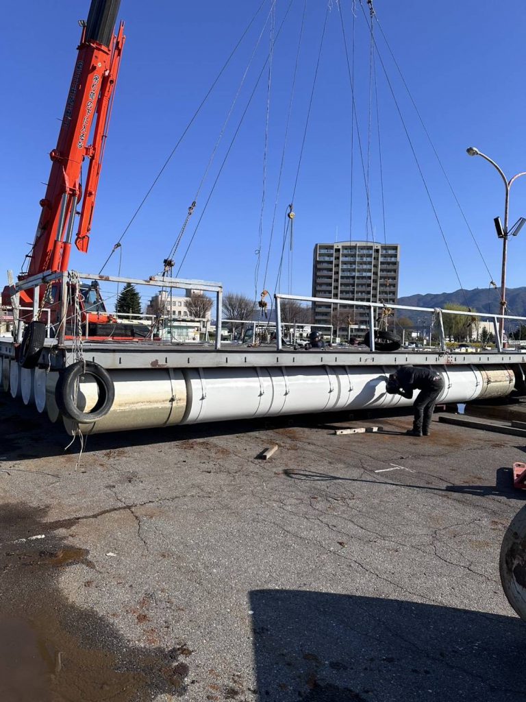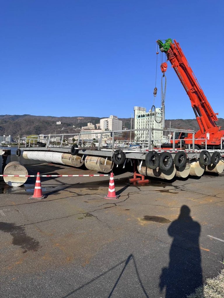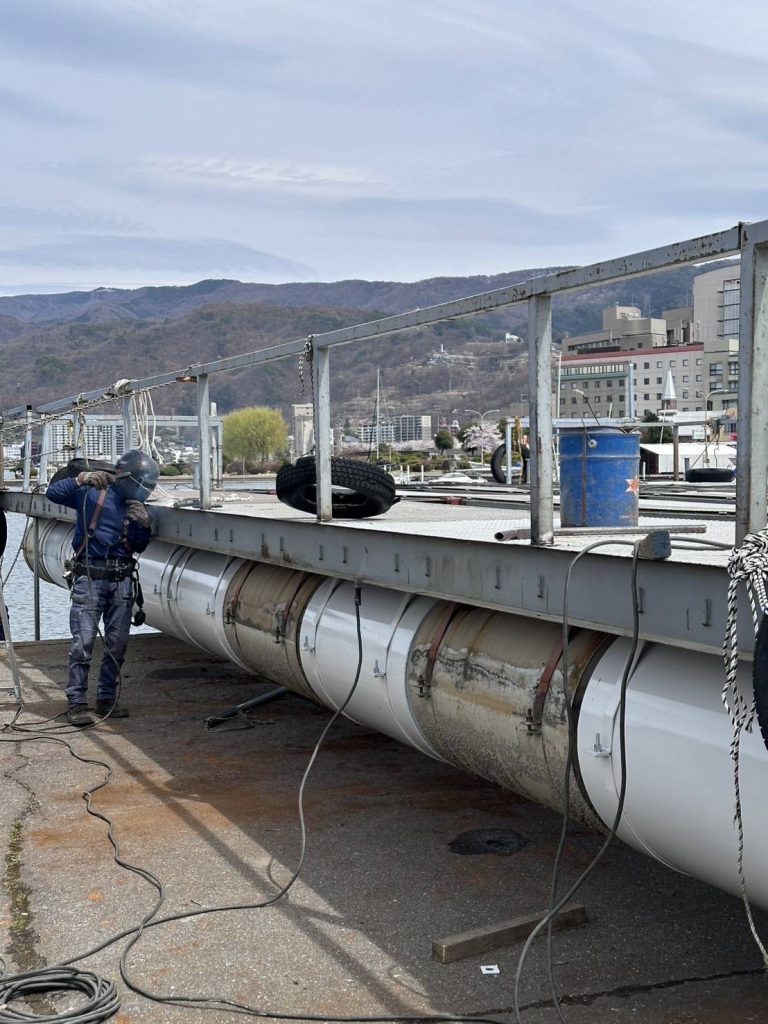 諏訪湖に浮かぶいかだのフロート交換工事を担当させていただきました。
